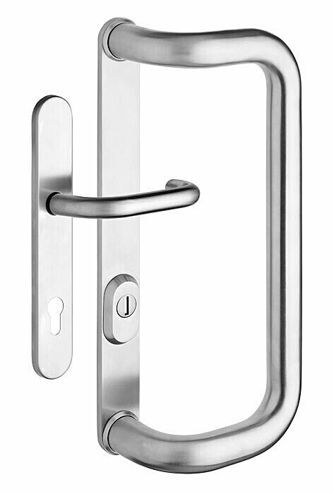 Okovje iz nerjavečega jekla z notranjim ščitom in ročajem je primerno tako za desna kot leva vhodna profilna vrata.