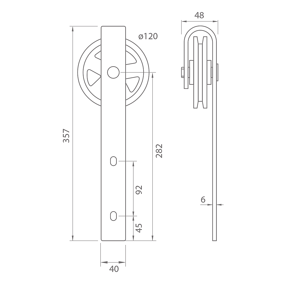 Brezčasna dizajnerska strojna oprema za enokrilna notranja vrata. Vsi deli so izdelani iz visokokakovostnega materiala - železa.