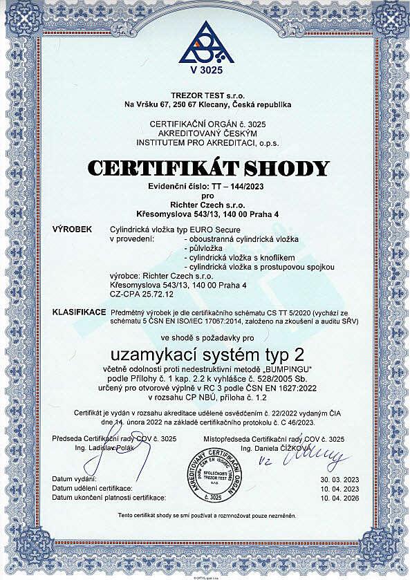 - Certificirano v varnostnem razredu RC3 v skladu s ČSN EN 1627:2012.
