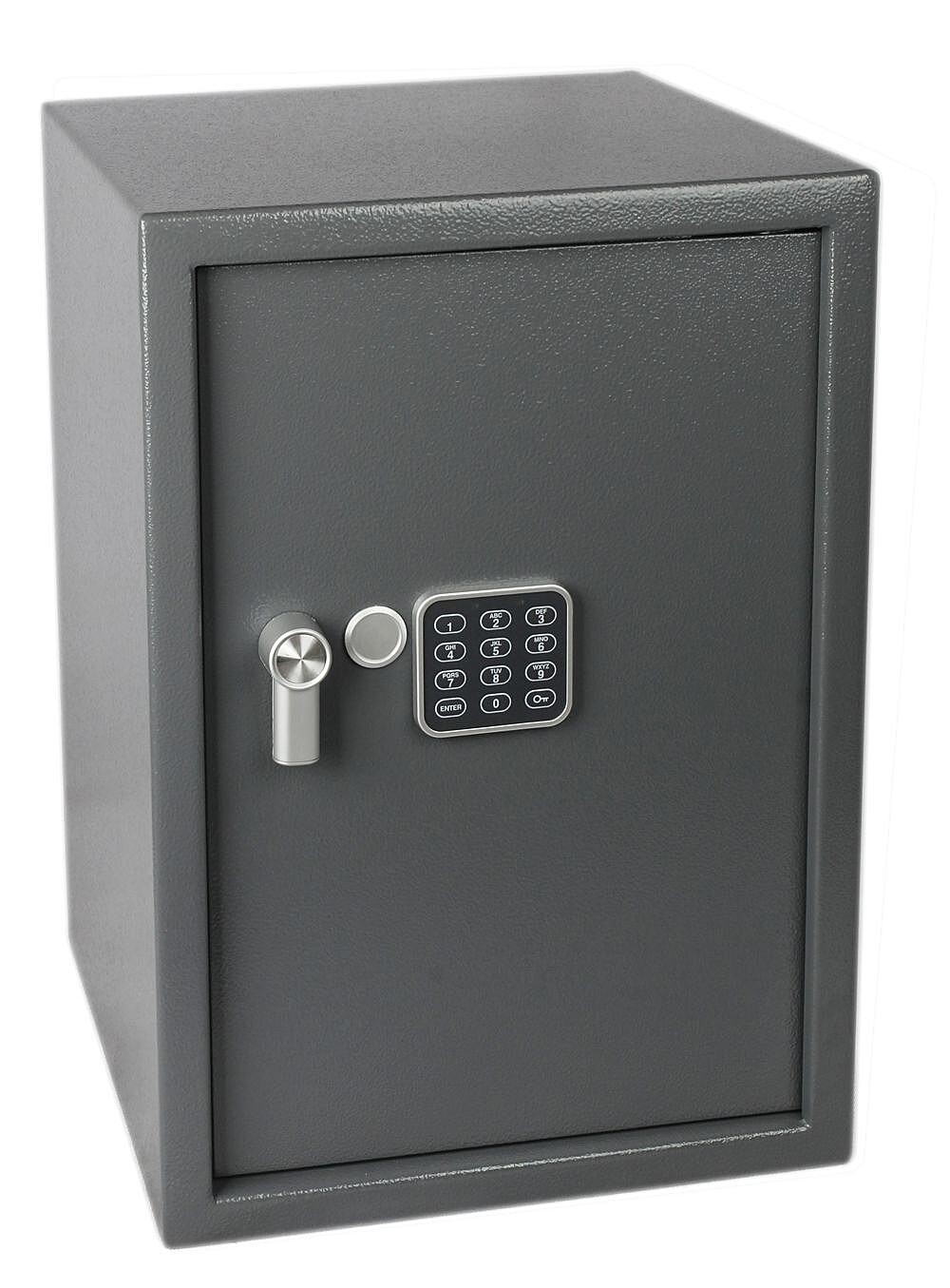 Jeklen sef z elektronsko ključavnico, numerično tipkovnico in ročico za odpiranje