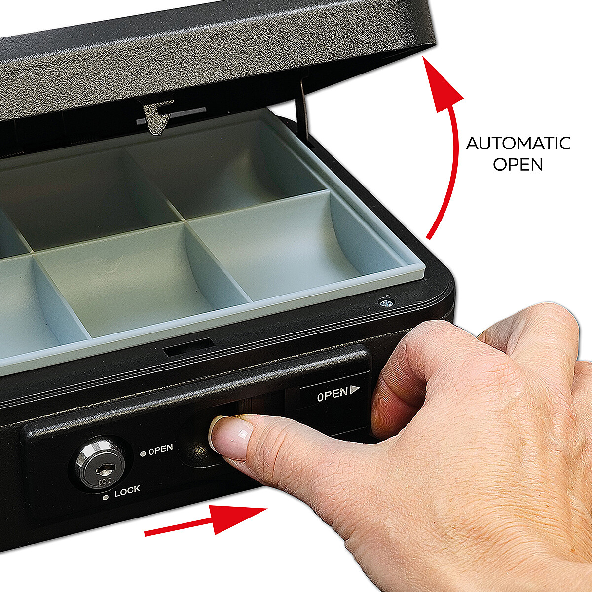 - Vključno s plastičnim predalom za kovance, filcem in 2 ključema.