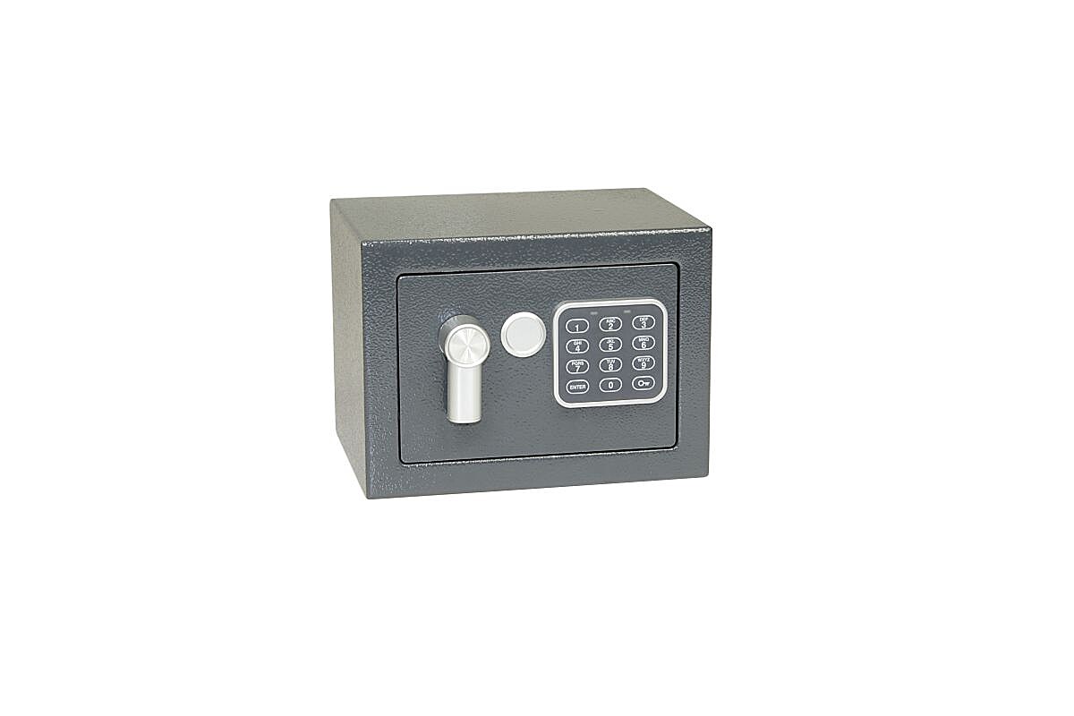 Jeklen sef z elektronsko ključavnico, numerično tipkovnico in ročico za odpiranje