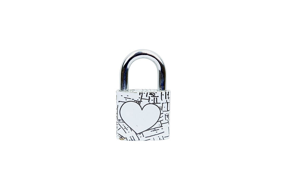 Litoželezna ključavnica v blisterju z barvnim tiskom in prostorom za pisanje imen RICHTER RV.OVAL.38.JU2