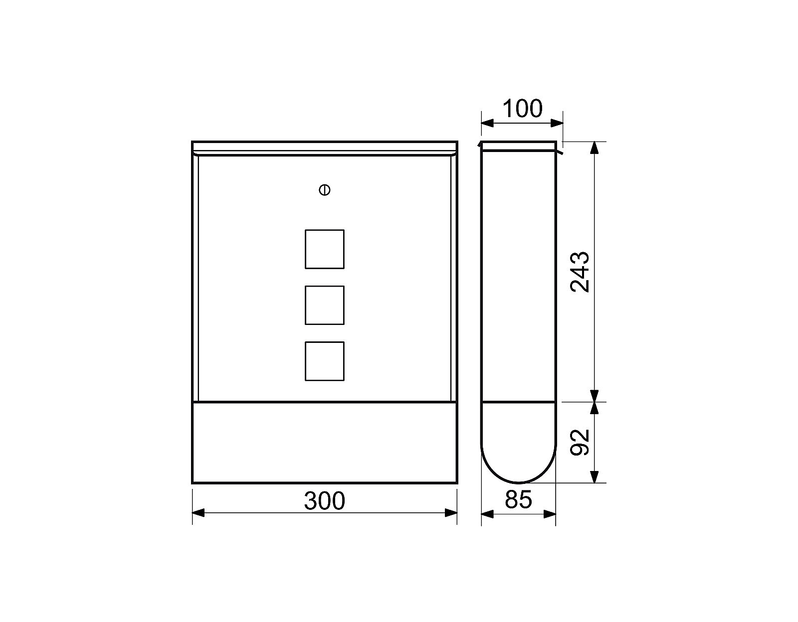 Jeklena škatla z okni iz pleksi stekla CLEAR, ki omogočajo delni pogled v njeno notranjost, in cevjo za tiskovine