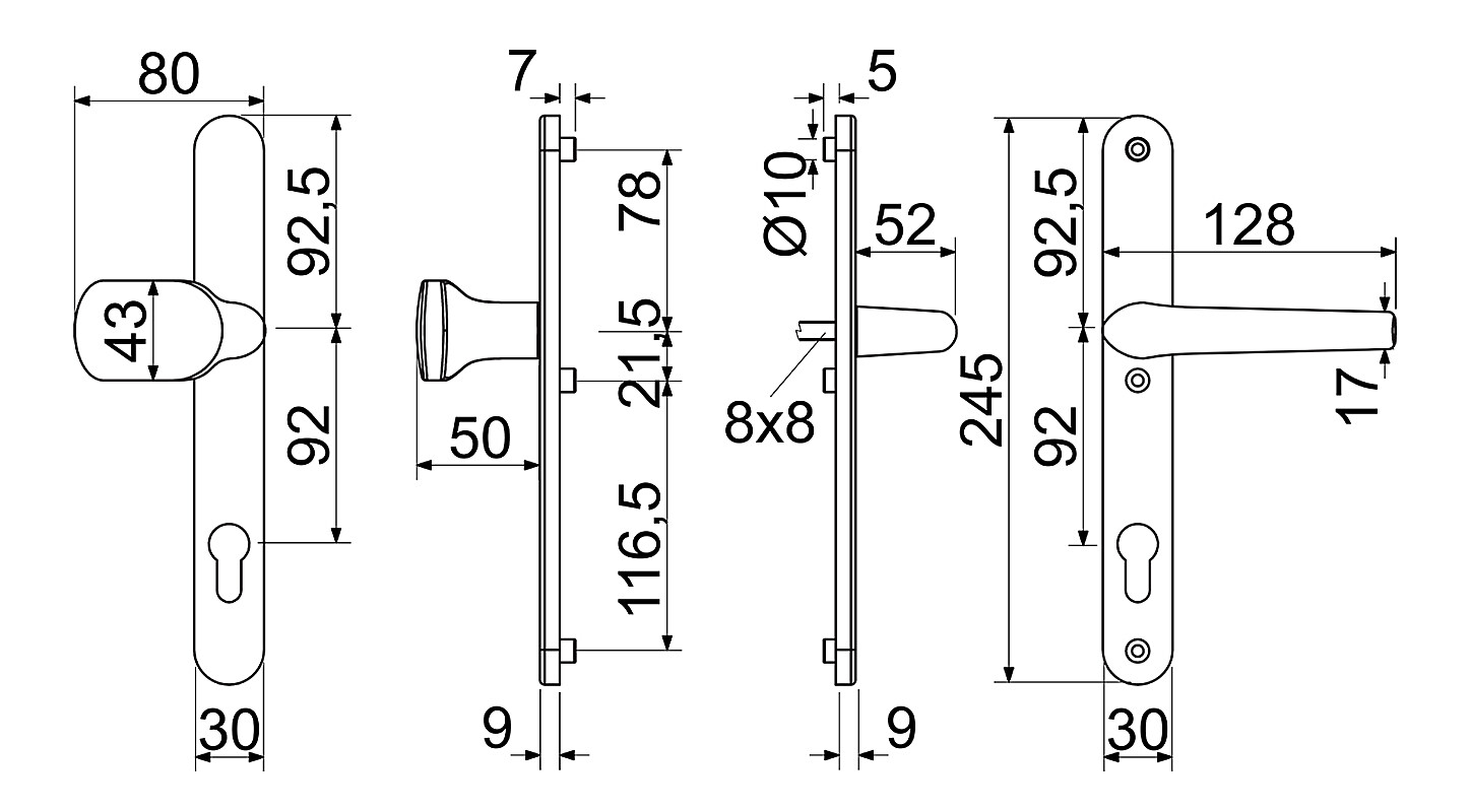 Okovje za vhodna vrata RICHTER RHD.005.92.(F4/F9016)