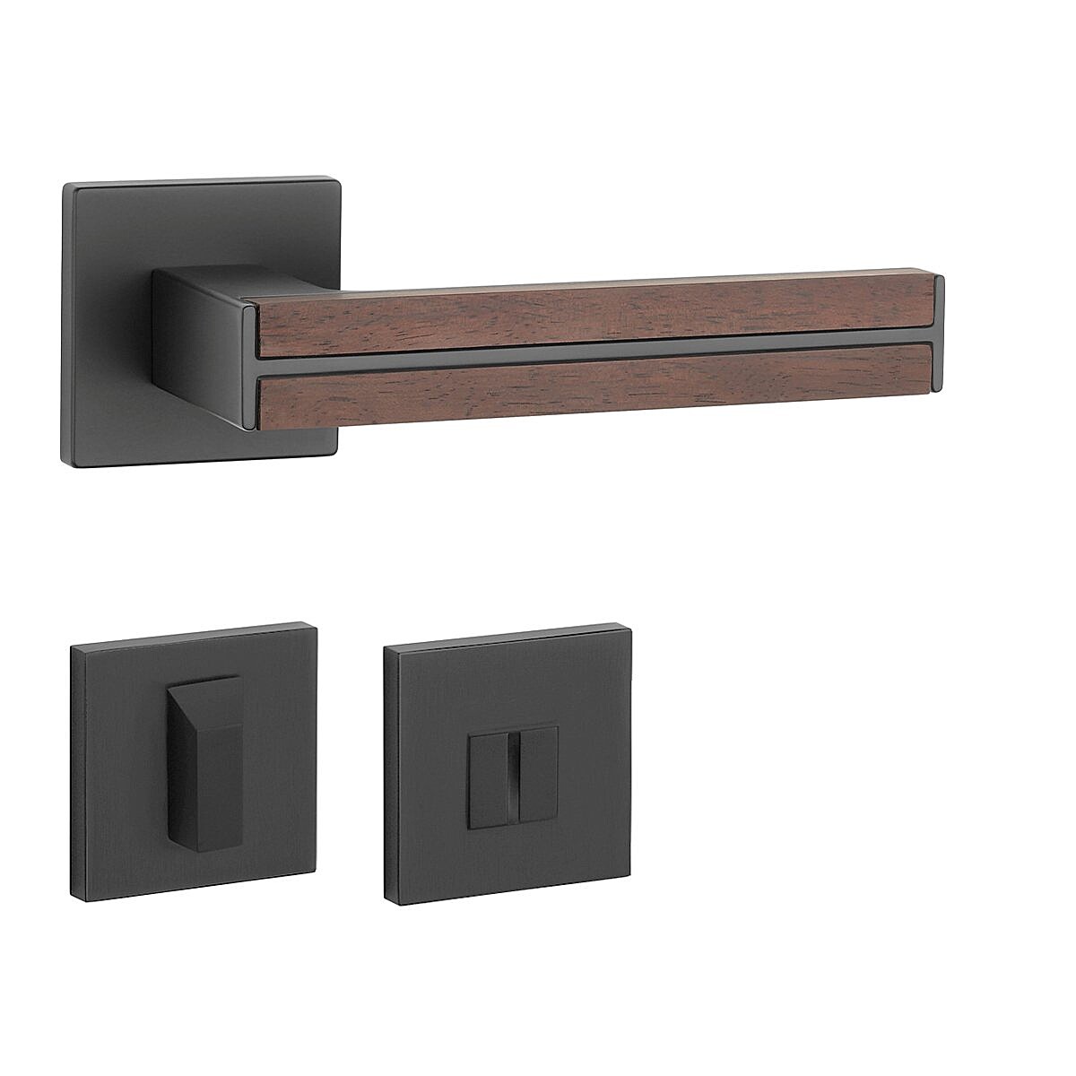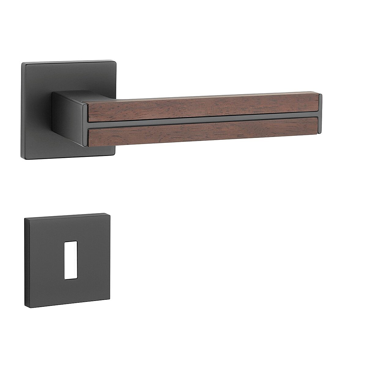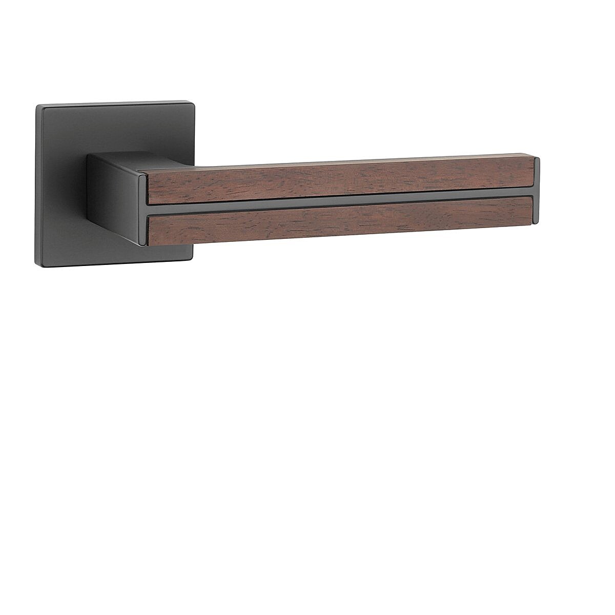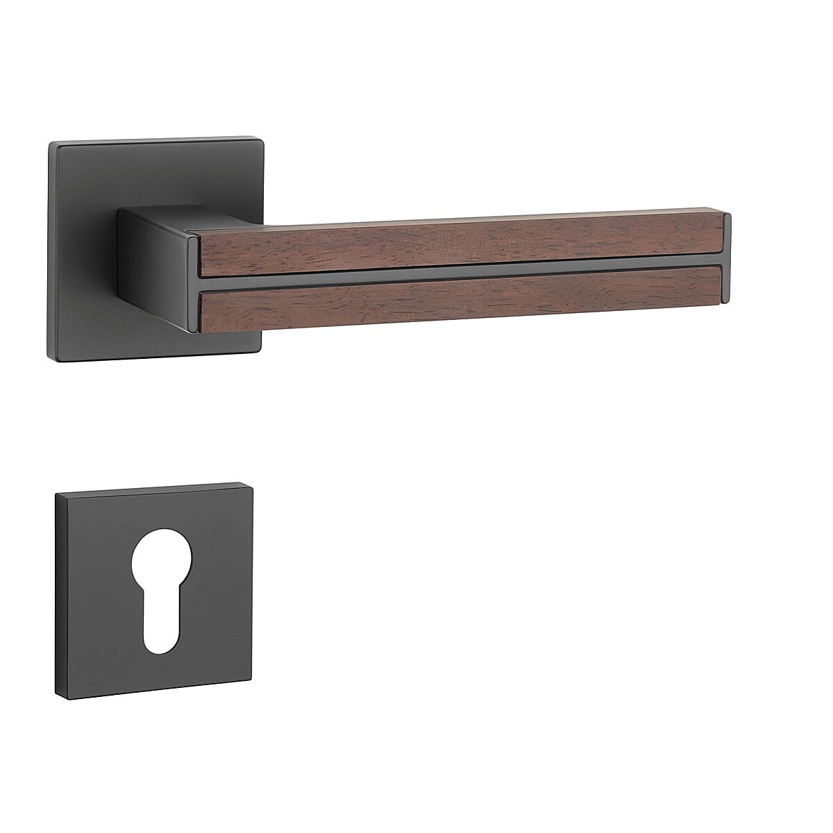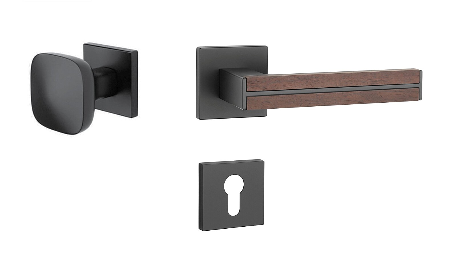 Rozeta za notranja vrata s kvadratno, zaobljeno rozeto je izdelana iz visokokakovostnih materialov - zamaka in je površinsko obdelana. Ročaj je videti eleganten in sodoben, kar poudarja tudi kombinacija črne in sandalovine. Ta dekorativni element mu daje edinstven videz in vzbuja prijeten občutek topline in narave.