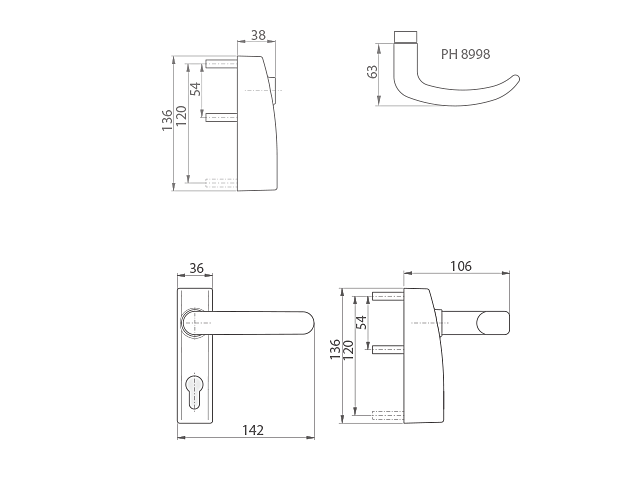 Zunanji okov z ročajem PHT 05 F