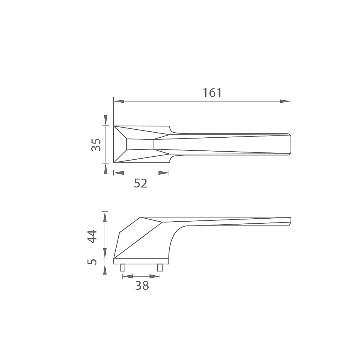 Rozeta za notranja vrata s pravokotno rozeto je izdelana iz visokokakovostnih materialov - zamaka in je površinsko obdelana. Rozeta ima dimenzije 52 mm x 35 mm in debelino le 5 mm. Rozeta sama je del zasnove ročaja.