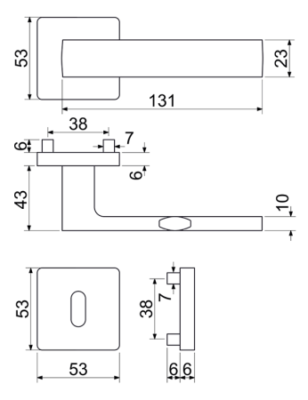 Aluminijasto okovje na kvadratnih rozetah z ročico s povratno vzmetjo