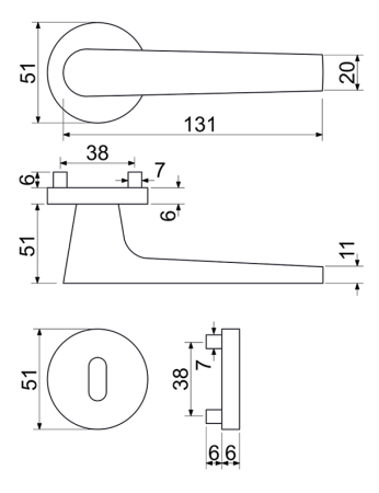 Aluminijasto okovje na okroglih rozetah s povratno vzmetno ročico