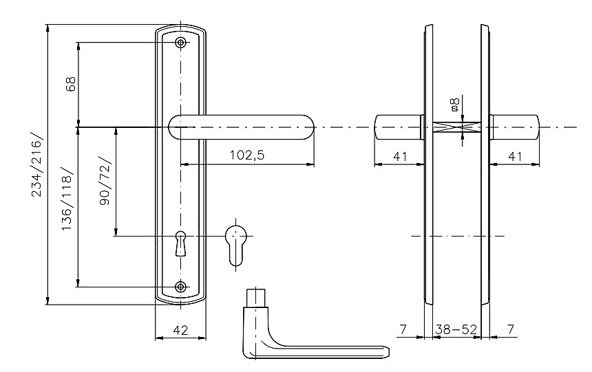 | Vrsta luknje - varianta | Luknja za običajni BB ključ, Odprtina za cilindrični vložek PZ, WC ključ |