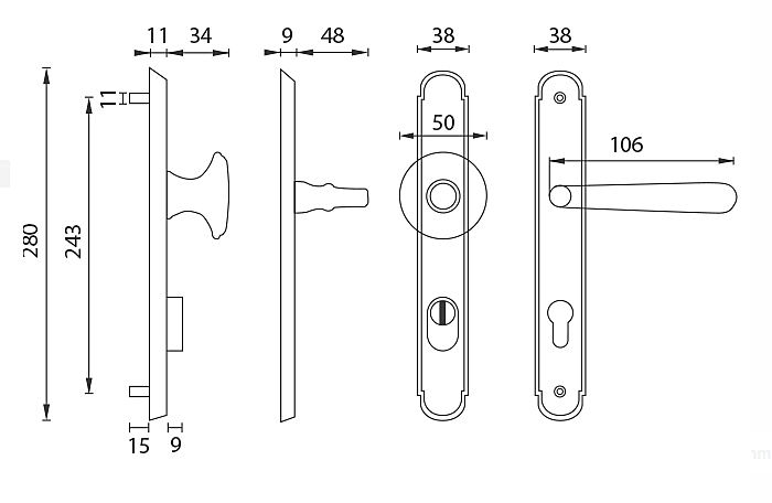 | Rozeta/Moč ščita | 9 mm / 11 mm |