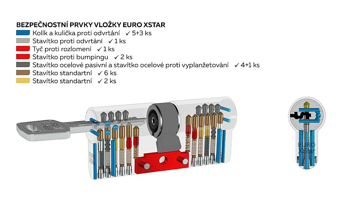 - Visoka zaščita pred vrtanjem z 9 kaljenimi jeklenimi elementi.