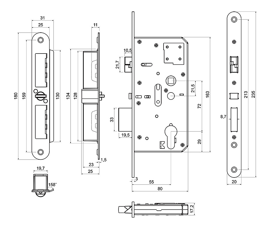 • Zaporna plošča vsebuje poseben vzmetni del pomožnega zapaha ključavnice.