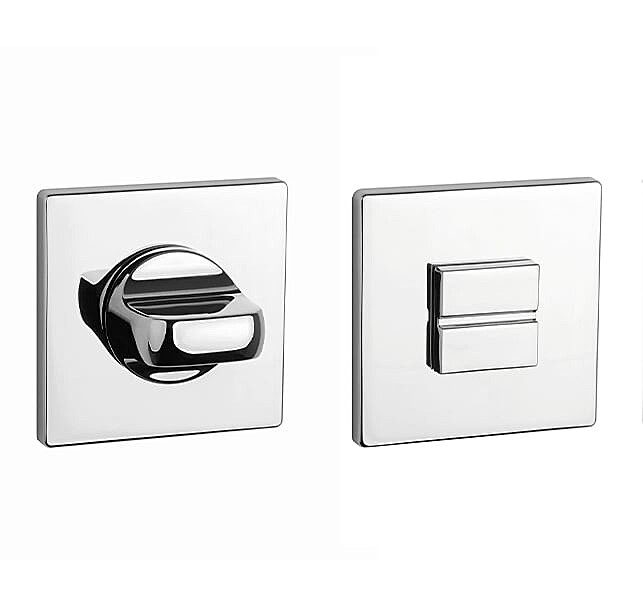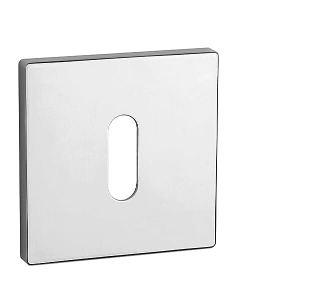 Rozeta ima dimenzije 52x52 mm, debelino 5 mm in ovalno luknjo za notranji ključ (BB), luknjo za cilindrični vložek (PZ), straniščni komplet z vgrajenim ključem.