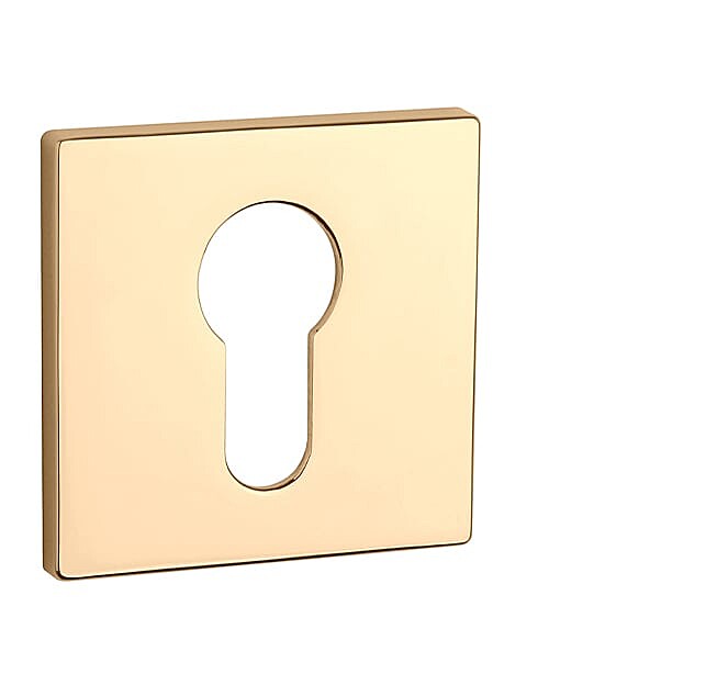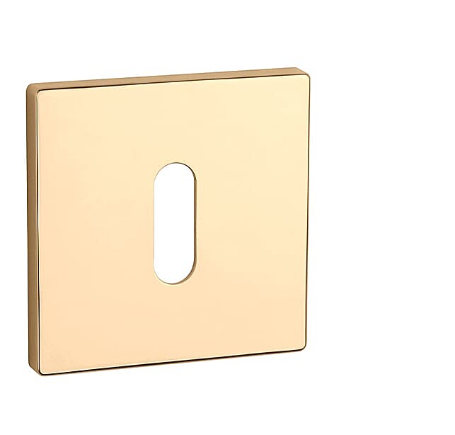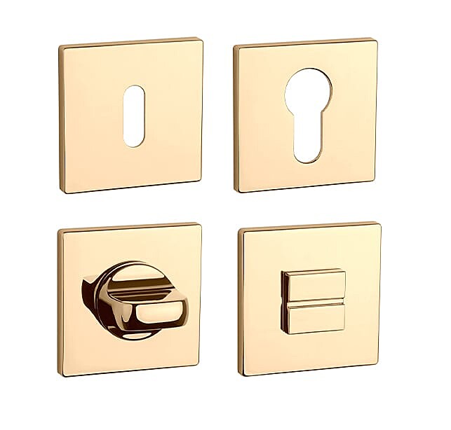 Rozeta ima dimenzije 52x52 mm, debelino 5 mm in ovalno luknjo za notranji ključ (BB), luknjo za cilindrični vložek (PZ), straniščni komplet z vgrajenim ključem.