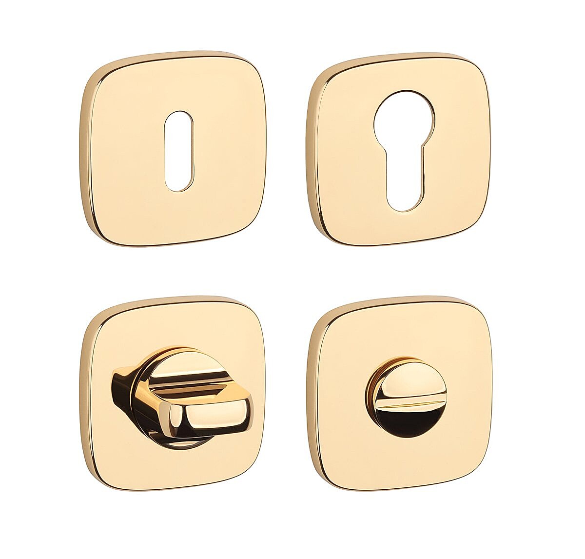 Izvedba: ovalna luknja za notranji ključ (BB), luknja za cilindrični vložek (PZ), WC komplet z vgrajenim ključem. Paket vsebuje 2 rozeti (par), WC rozeti pa sta pakirani kot komplet.