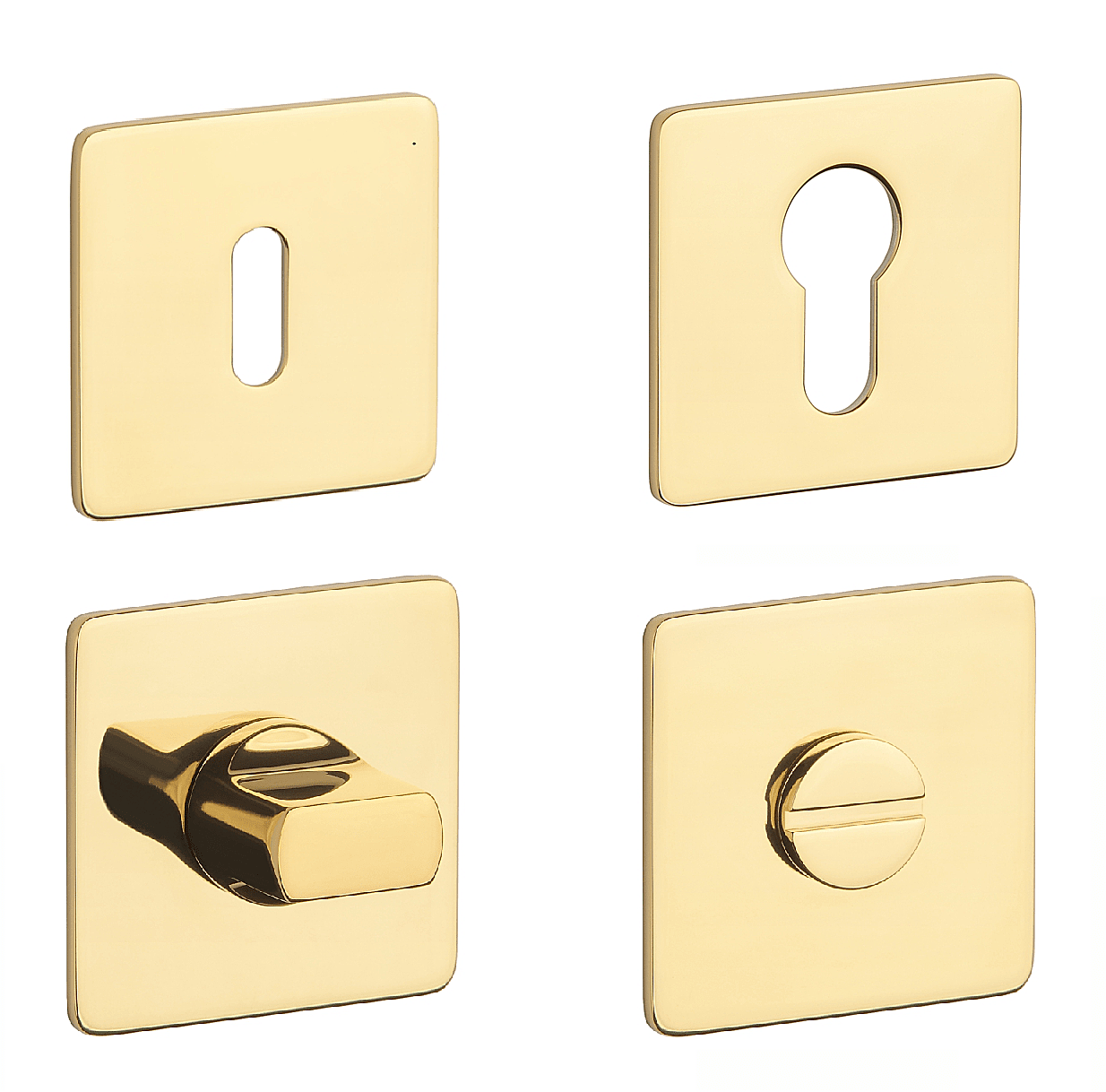 Ovalna luknja za notranji ključ (BB), luknja za cilindrični vložek (PZ) ali WC komplet z vgrajenim ključem. Paket vsebuje 2 rozeti (par), WC rozete pa so pakirane kot komplet.