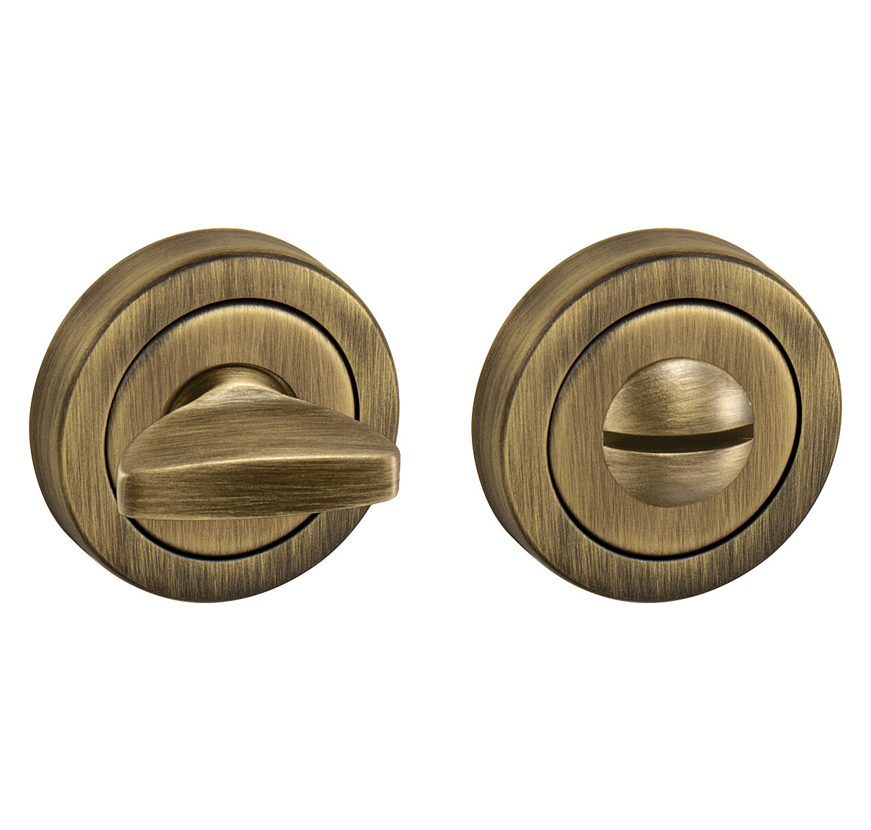 Okrogla rozeta za kljuko vrat je izdelana iz visokokakovostnih materialov - medenine in ima površinsko obdelavo.