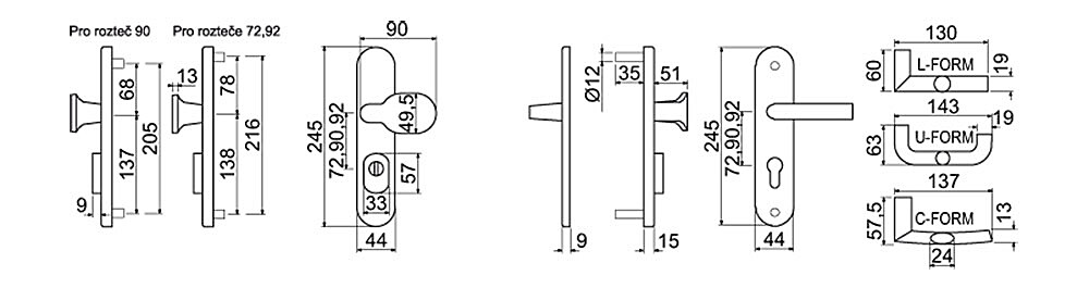 | Razmik | 72 mm, 90 mm, 92 mm |