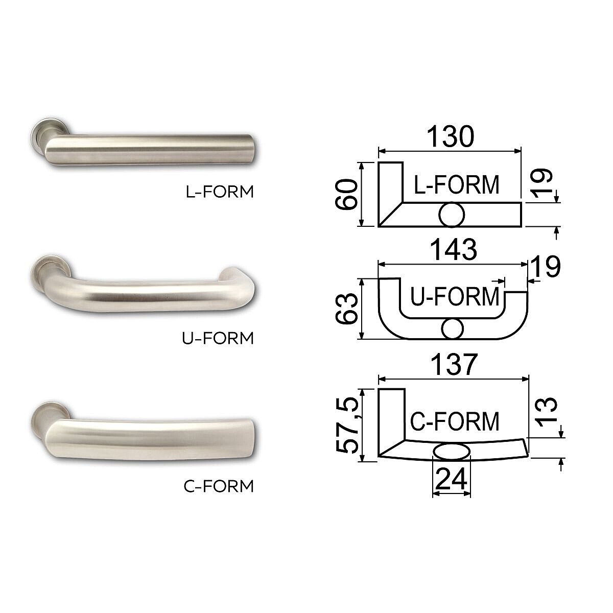 - Ročaj, izbira treh oblik (art. 67, 68, 73).