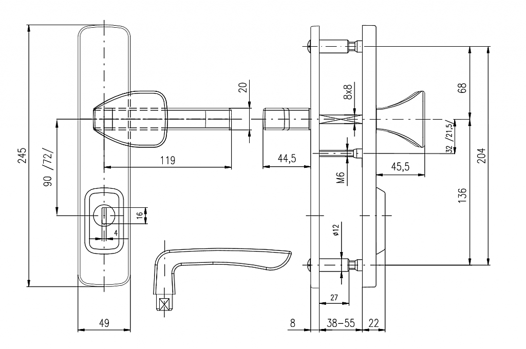 Varnostno okovje je namenjeno vhodnim vratom, ki se odpirajo navznoter in navzven.