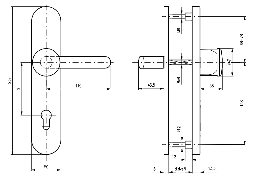 | Površinska obdelava - varianta | ROSTEX Sijajni krom-nerjaveče jeklo |