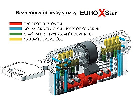 - Visoka zaščita pred vrtanjem z uporabo 9 kaljenih jeklenih elementov in nedestruktivne dinamične metode (tako imenovanega bumpinga)