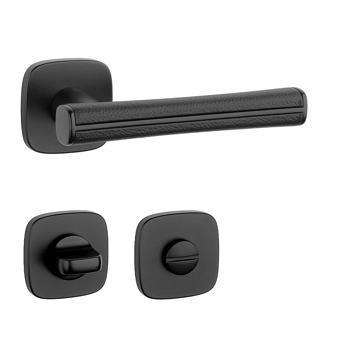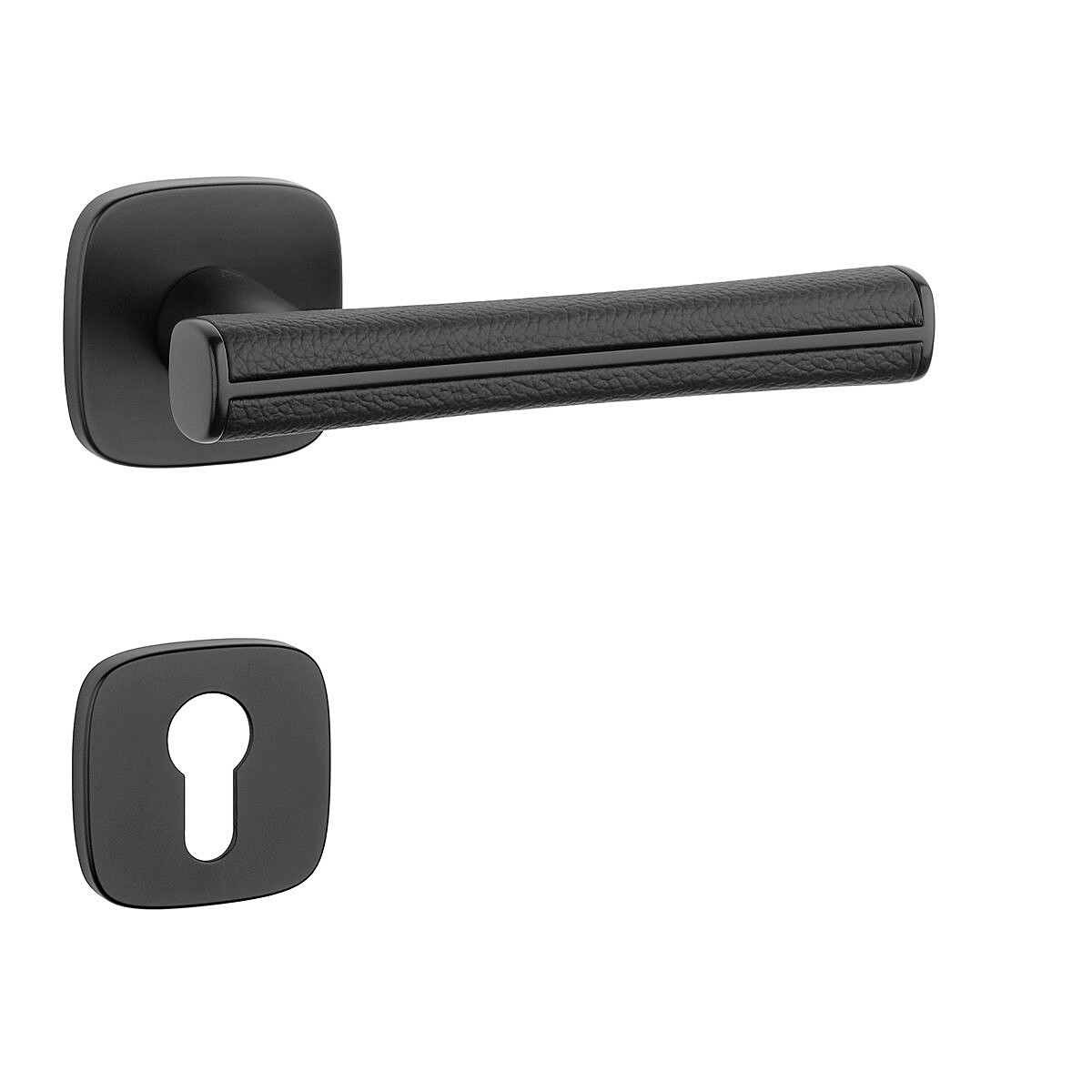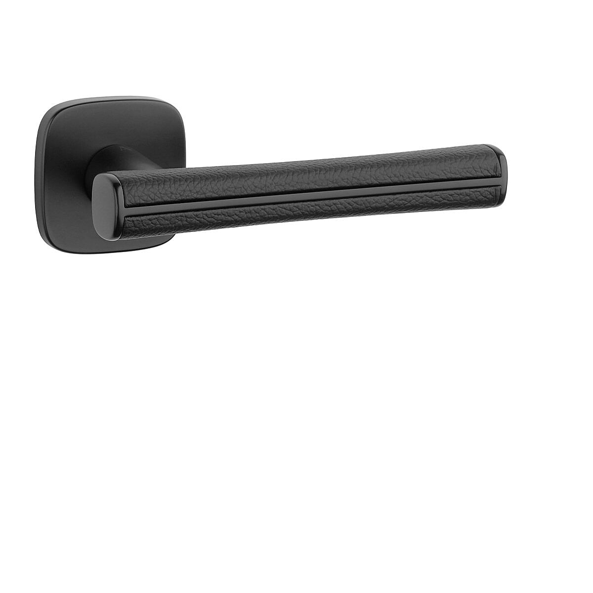 Rozeta za notranja vrata s kvadratno, zaobljeno rozeto je izdelana iz visokokakovostnih materialov - zamaka in ima površinsko obdelavo. Poseben učinek ustvarja črno usnje, ki obdaja ročaj ročaja.