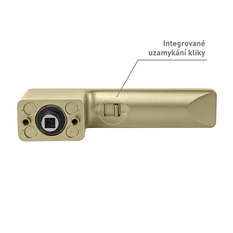 Ročaj izstopa po brezčasnem dizajnu in zanesljivi izdelavi. Mehanizem vsebuje povratno vzmet, ki zagotavlja udobno rokovanje, izbokline na rozeti pa preprečujejo njeno obračanje. Vijaki, ki potekajo skozi celotno debelino vrat, zagotavljajo trdno in stabilno pritrditev okovja.
