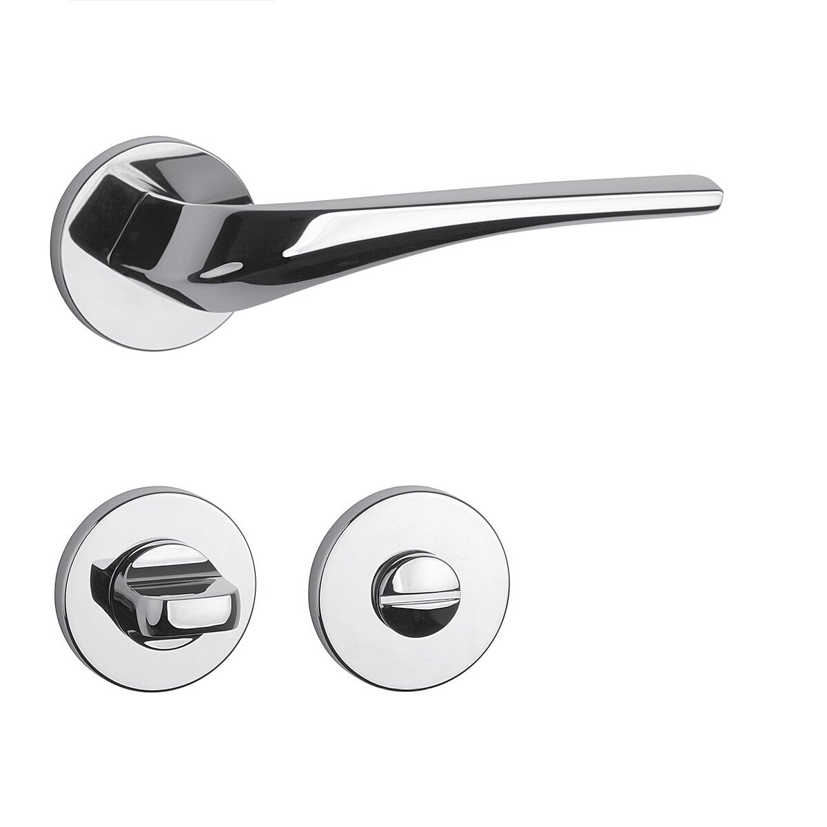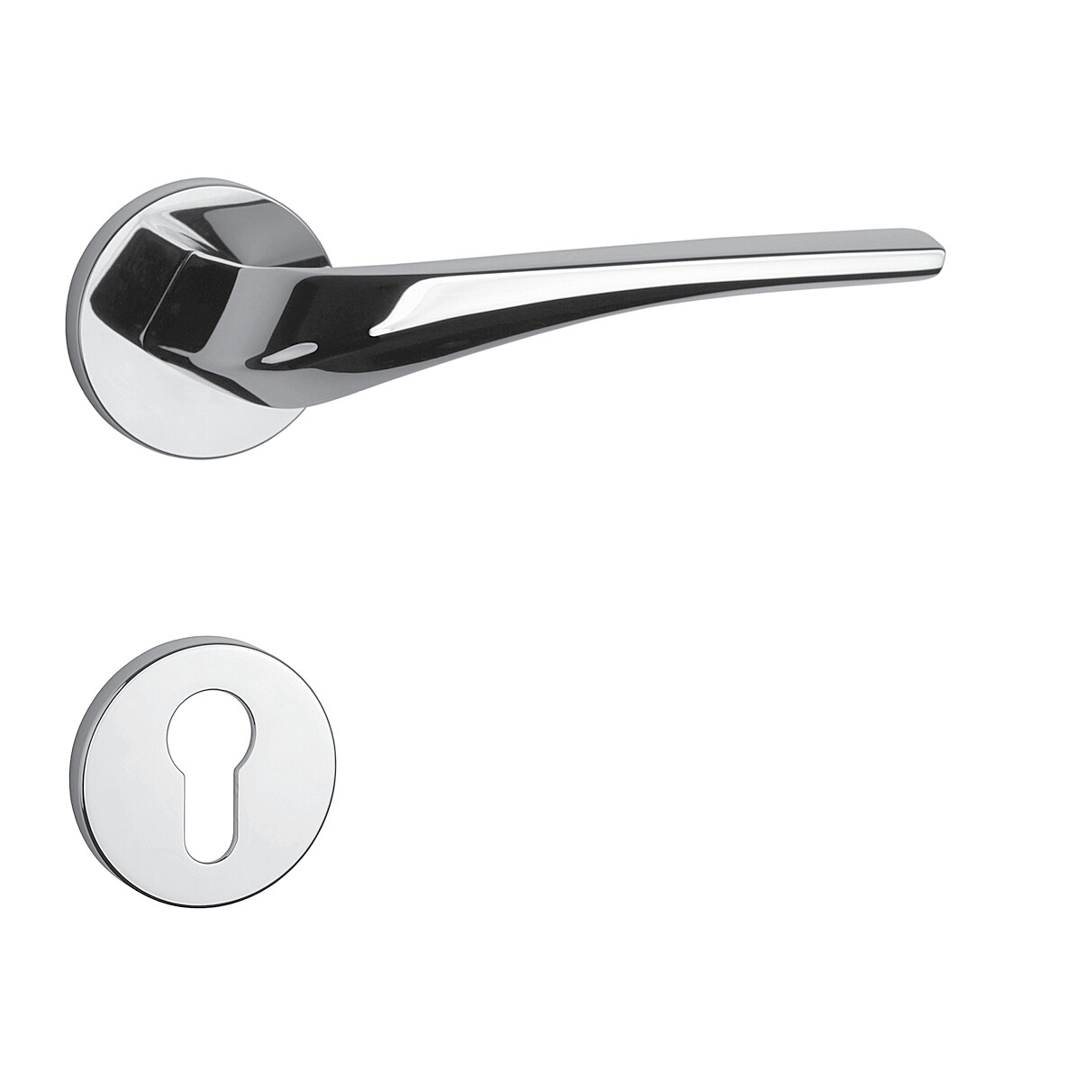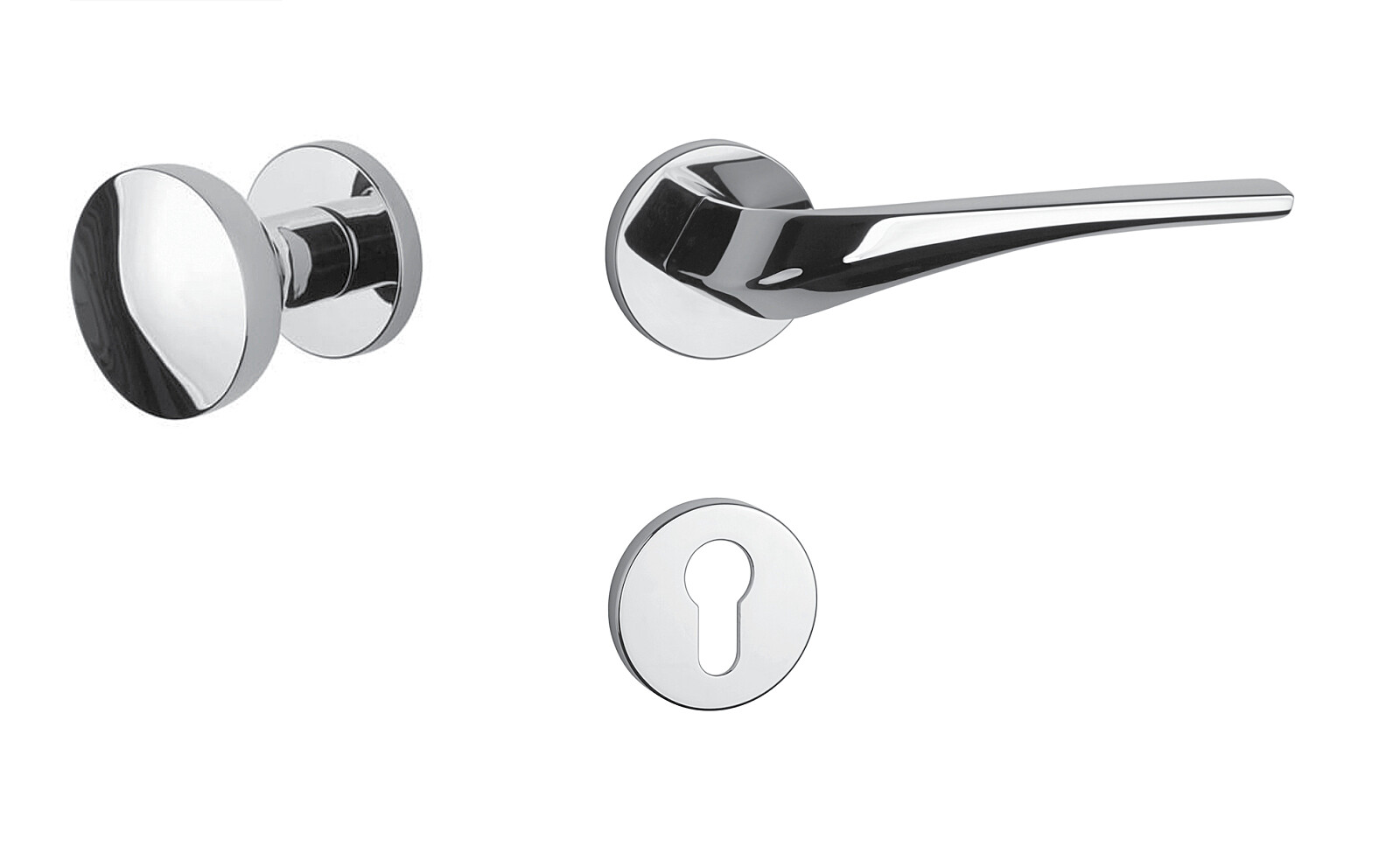 - Rozetni ročaj za notranja vrata z okroglo rozeto je izdelan iz visokokakovostnih materialov - zamak in je površinsko obdelan. Rozeta ima premer 52 mm in debelino le 7 mm. Minimalistična zasnova rozete z visoko stabilnostjo vratne kljuke deluje subtilno in pušča prostor, da sama oblika kljuke izstopa.